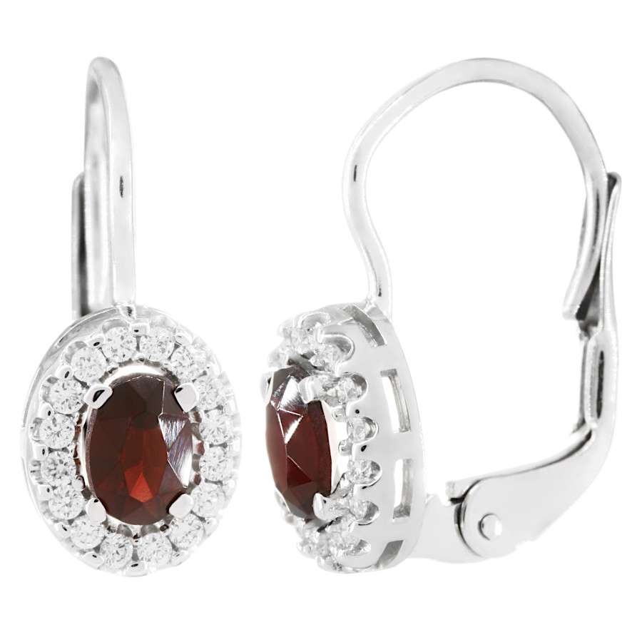 Český granát - náušnice bílé zlato Ovál s českým granátem a brilianty