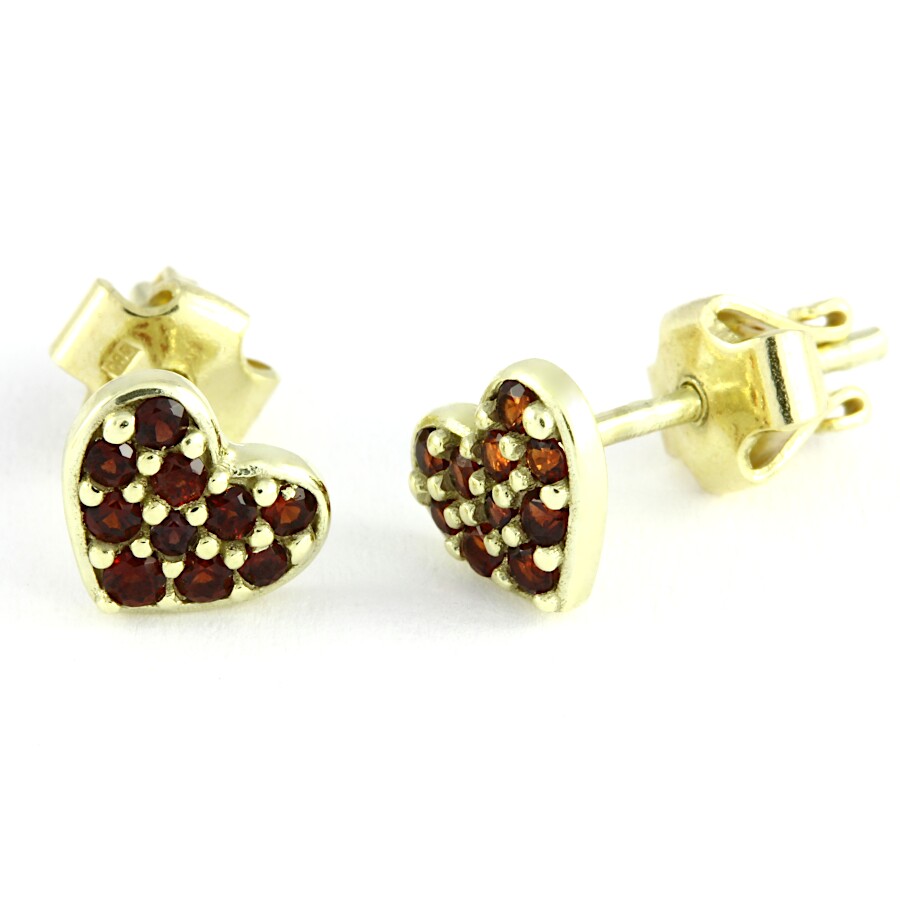 Český granát - náušnice zlaté Srdíčko