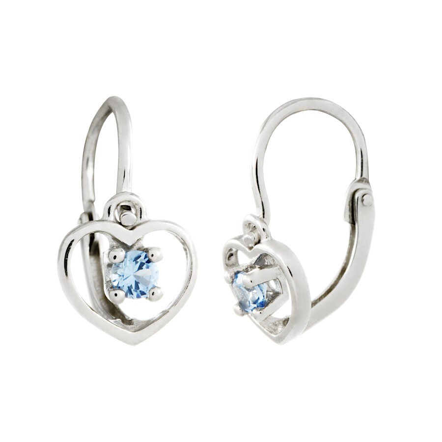 Dětské náušnice bílé zlato Srdíčka světle modrý zirkon