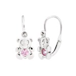 | Náušnice dětské bílé zlato Medvídek s růžovým zirkonem