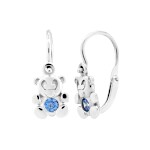 | Náušnice dětské bílé zlato Medvídek se sv. modrým zirkonem