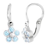 | Náušnice dětské bílé zlato Květinka světle modré zirkony