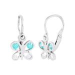 | Dětské náušnice bílé zlato Motýl modrozelené a bílé zirkony