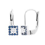 | Náušnice dětské bílé zlato Čtvereček modré a bílé zirkony