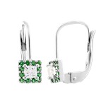 | Náušnice dětské bílé zlato Čtvereček zelené a bílé zirkony