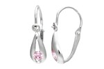 | Náušnice dětské bílé zlato Kapka střed růžový zirkon