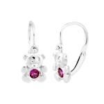 | Náušnice dětské bílé zlato Medvídek s červeným zirkonem