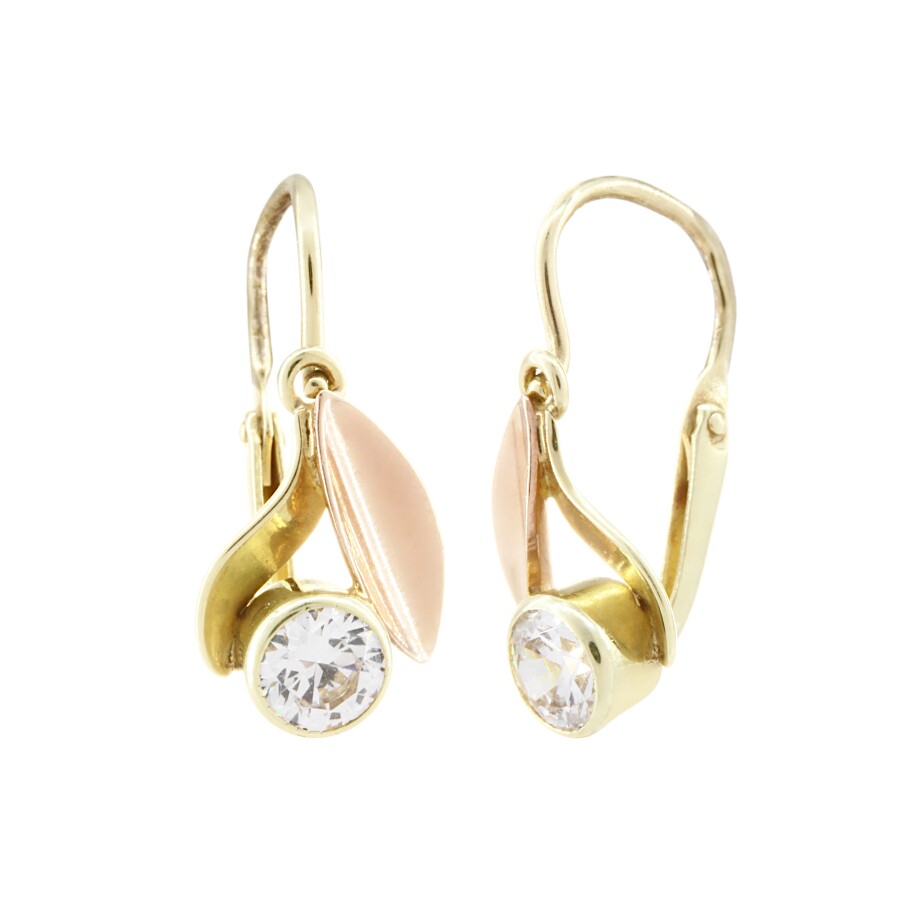 Dětské náušnice kombinované zlato s bílým zirkonem