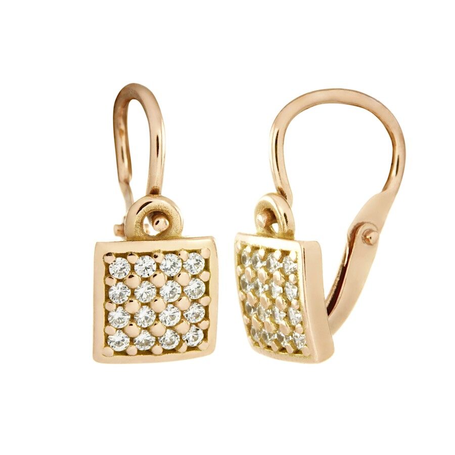 Dětské náušnice růžové zlato Čtverec bílé zirkony