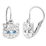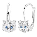 | Náušnice stříbrné dětské Kočky tmavě modré oči