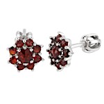 | Náušnice stříbrné Kytička s přírodními granáty