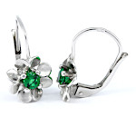 | Náušnice stříbrné Květina střed zelený zirkon