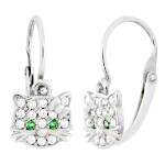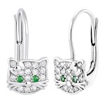 | Náušnice stříbrné dětské Kočky zelené oči
