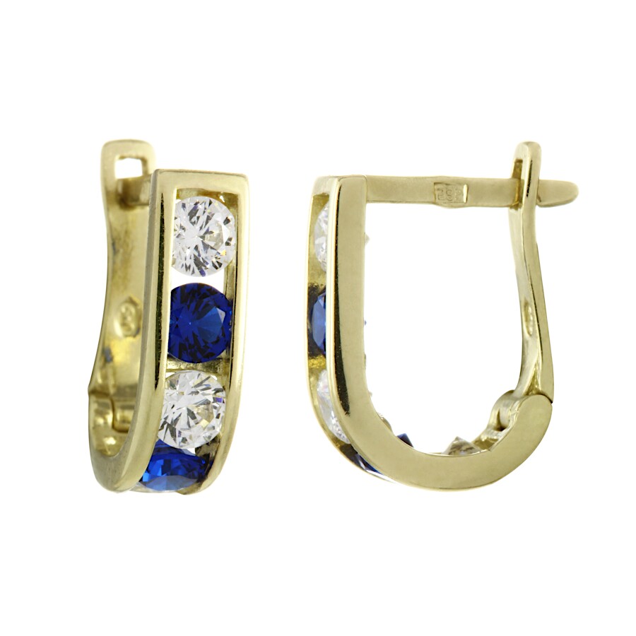 Dětské náušnice zlaté bílé a tmavě modré zirkony