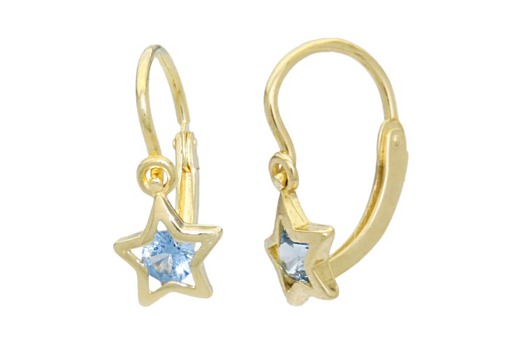 Dětské náušnice zlaté Hvězdičky světle modrý zirkon