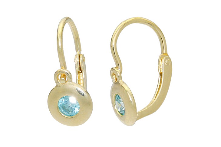 Dětské náušnice zlaté Kolečka modrozelený zirkon