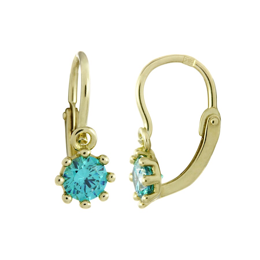 Dětské náušnice zlaté Kolečka modrozelený zirkon