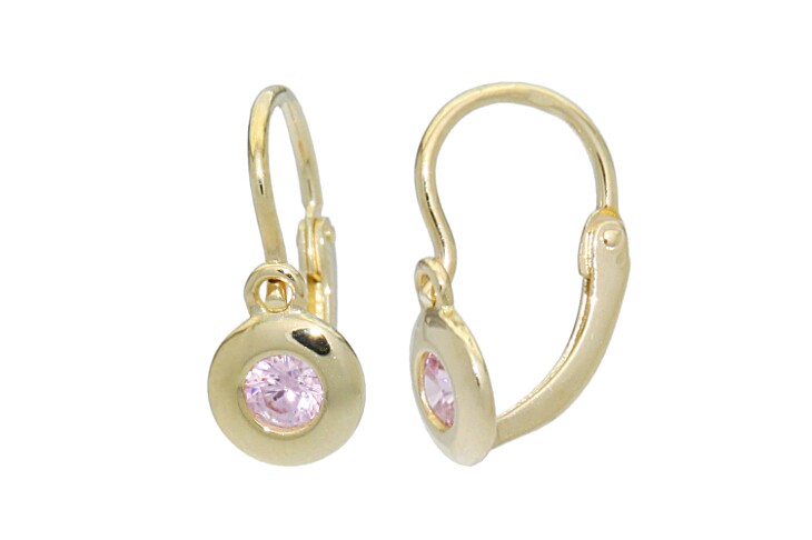 Dětské náušnice zlaté Kolečka s růžovým zirkonem