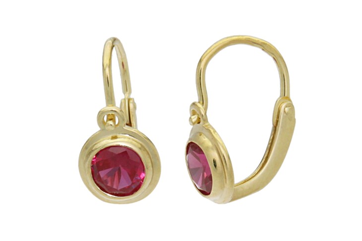 Dětské náušnice zlaté Kolečka se syntetickým rubínem