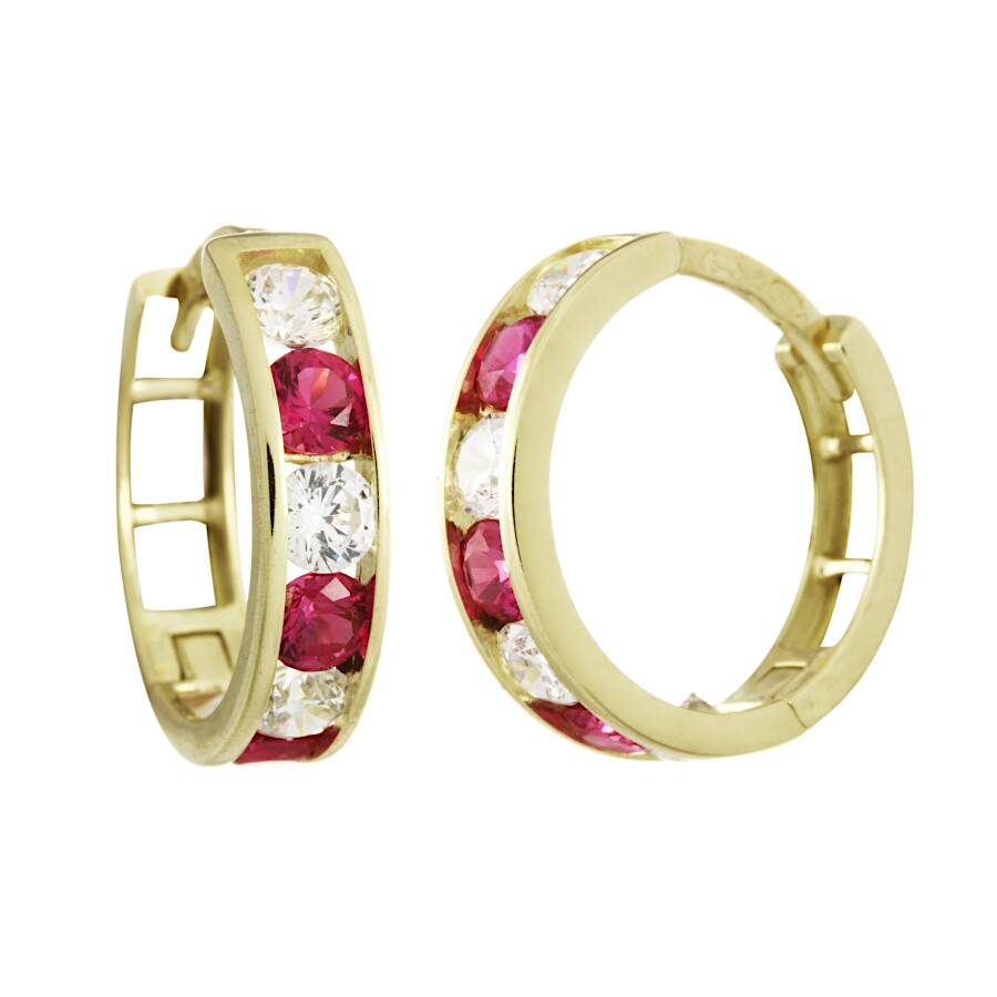 Dětské náušnice zlaté Kruhy bílé a červené zirkony