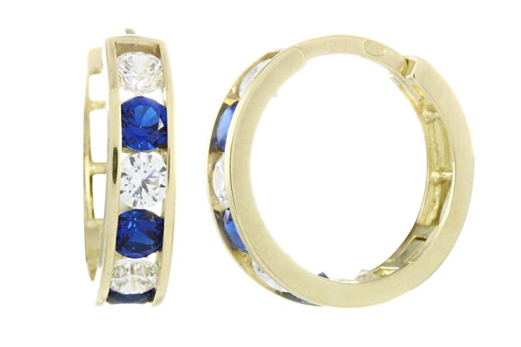 Dětské náušnice zlaté Kruhy bílé a tmavě modré zirkony