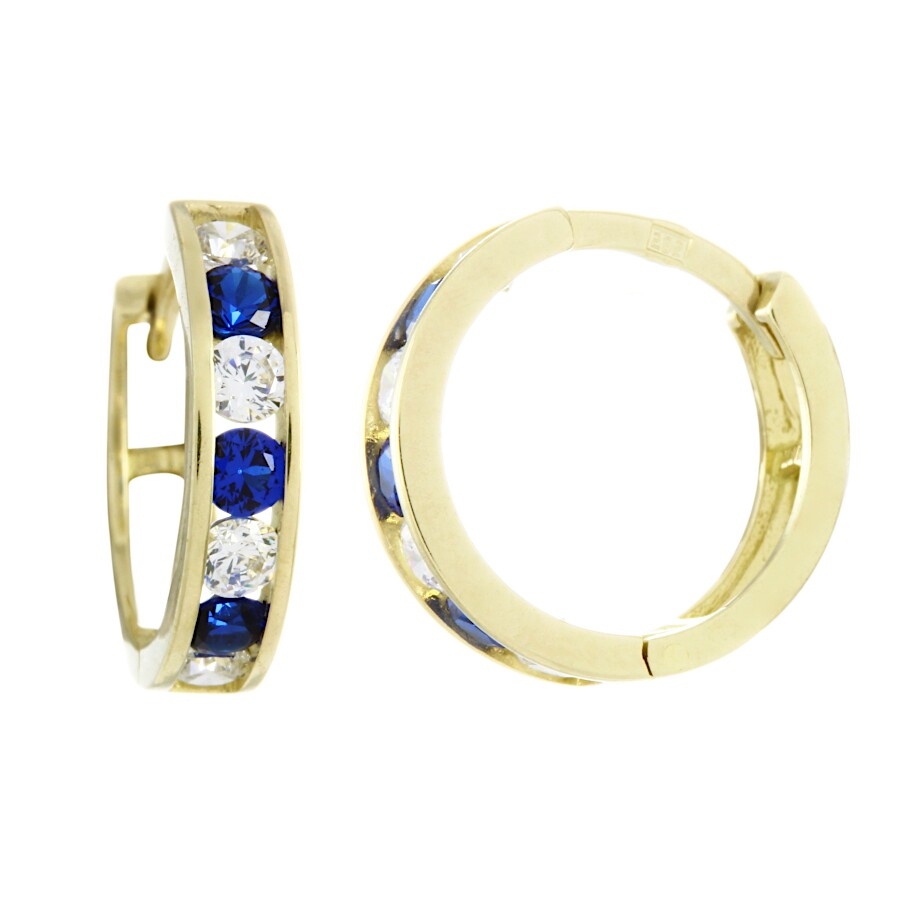 Dětské náušnice zlaté Kruhy malé bílé a tmavě modré zirkony