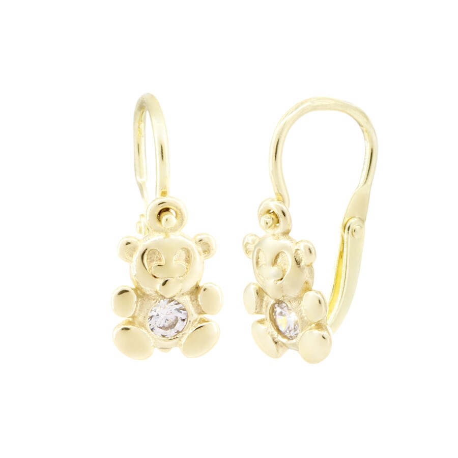 Dětské náušnice zlaté Medvídek s bílým zirkonem