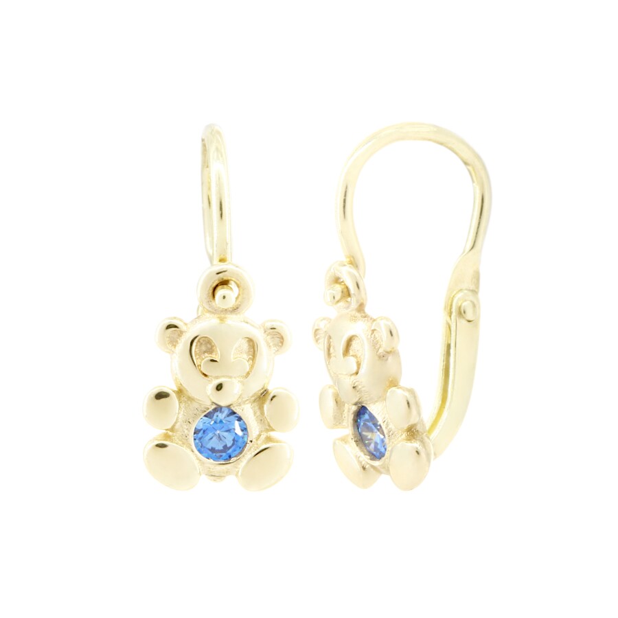 Dětské náušnice zlaté Medvídek s modrým zirkonem