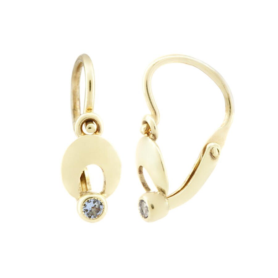 Dětské náušnice zlaté Ovál prořez se světle modrými zirkony