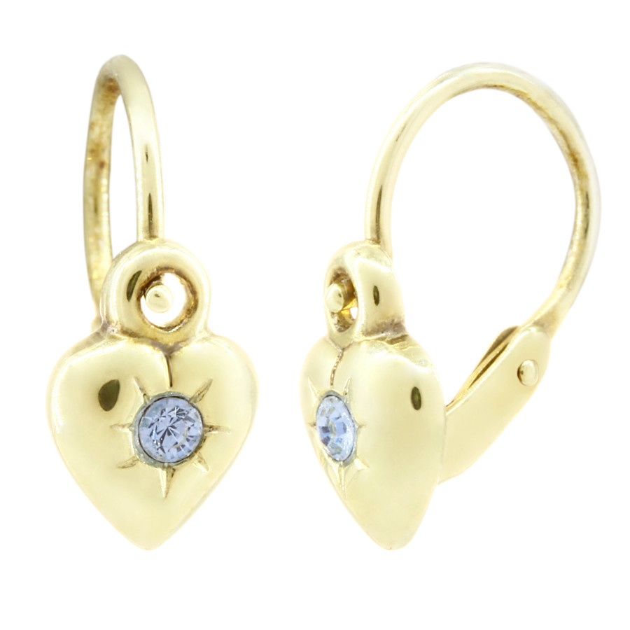 Dětské náušnice zlaté Srdíčka střed světle modrý zirkon
