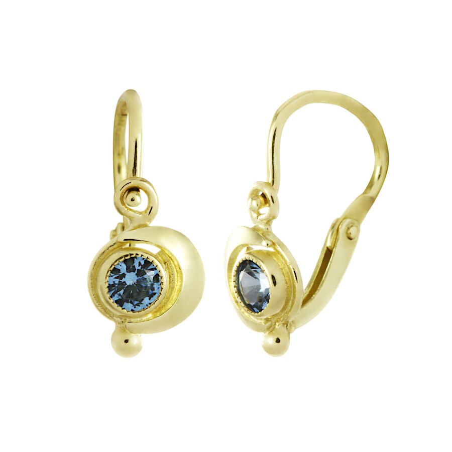Dětské náušnice zlato Kolečko střed světle modrý zirkon