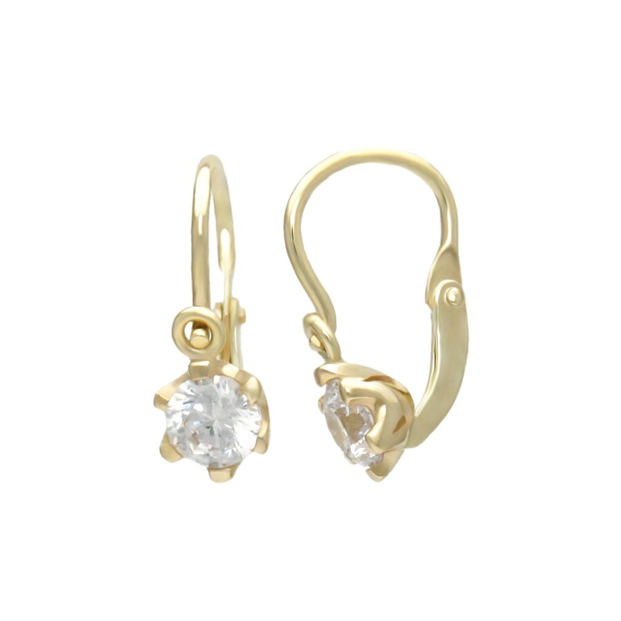 Dětské náušnice zlato Šestihran střed bílý zirkon