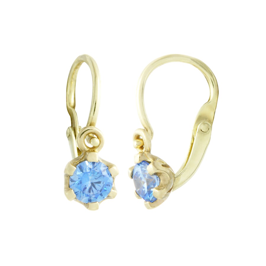Dětské náušnice zlato Šestihran střed modrý zirkon