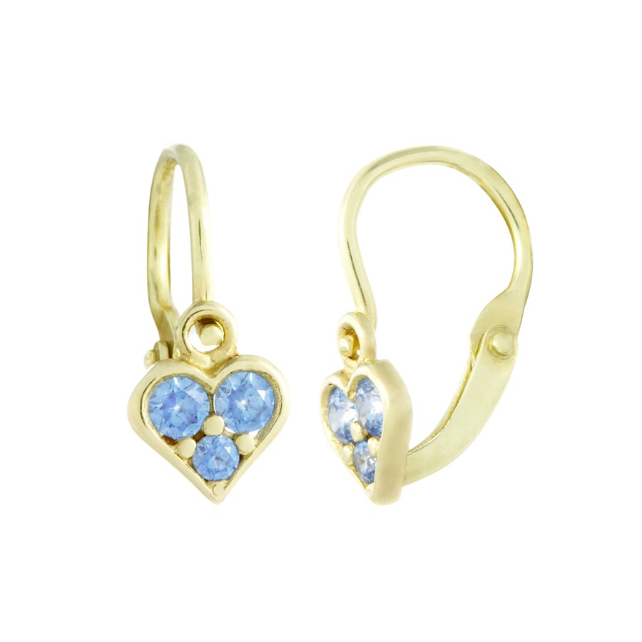 Dětské náušnice zlato Srdíčko světle modré zirkony