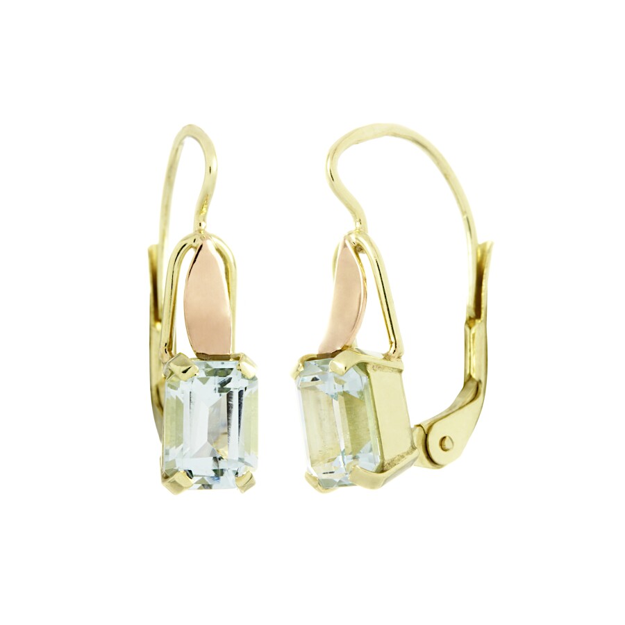 Limitovaná edice - náušnice kombinované zlato Obdélníky s přírodními akvamaríny
