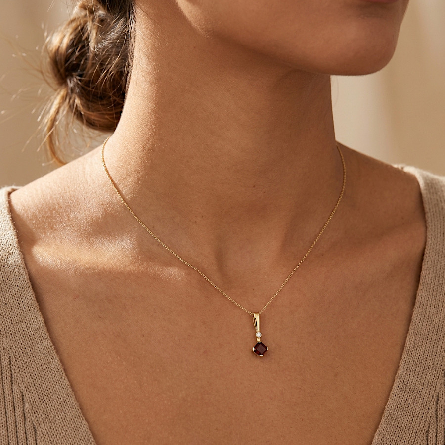 Limitovaná edice - přívěsek zlatý Čtvereček s briliantem a almandinem