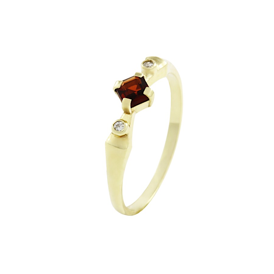Limitovaná edice - prsten zlatý Čtverec s brilianty a almandinem |