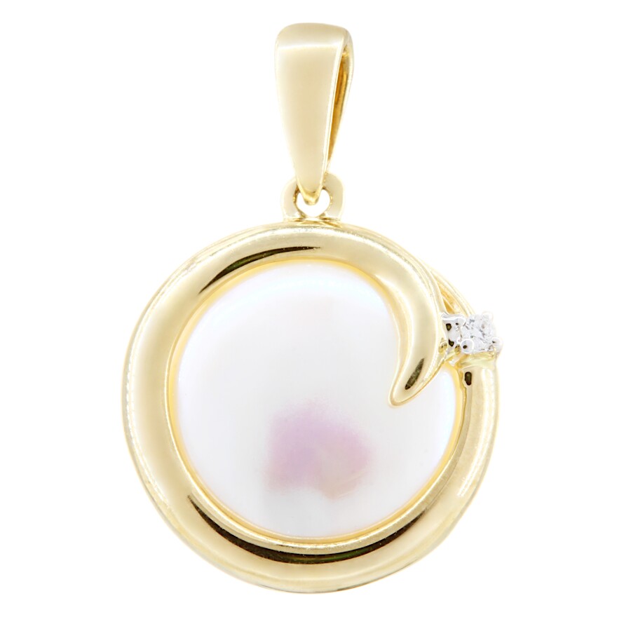 Luxusní přívěsek zlato Perla sladkovodní plochá a briliant