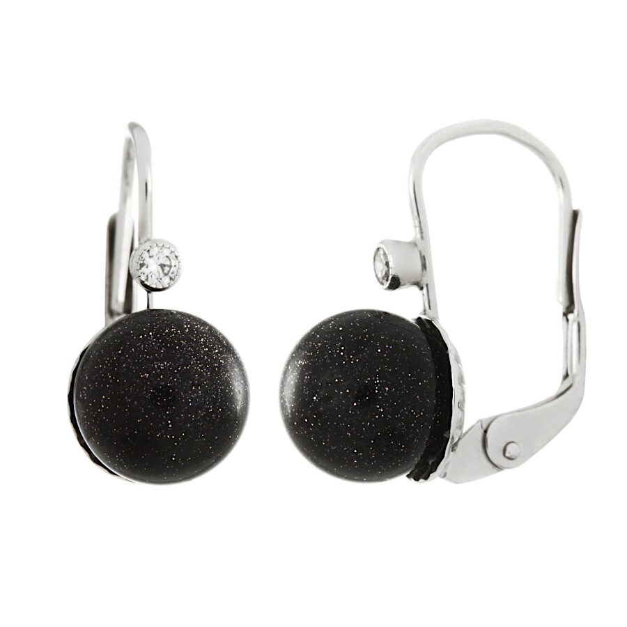 Náušnice bílé zlato Avanturín modrý se zirkonem
