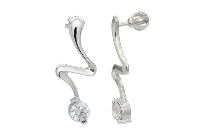Náušnice bílé zlato Blesk s kulatým zirkonem ze soupravy