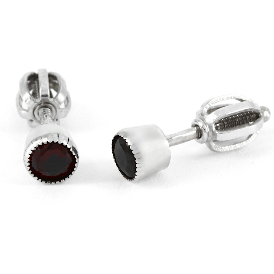 Náušnice bílé zlato Český granát v obrubě - ruční práce