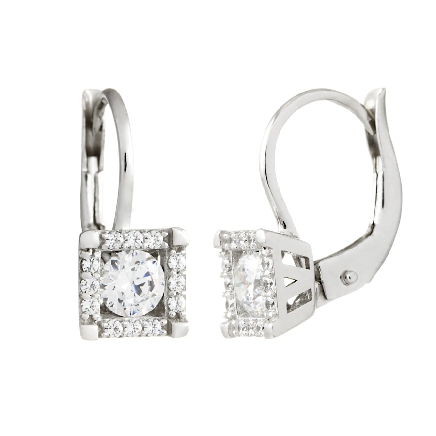 Náušnice bílé zlato Čtverce se zirkony