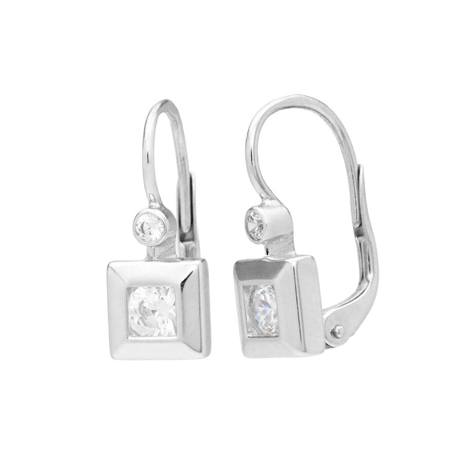 Náušnice bílé zlato Čtverec se zirkony ze soupravy NO-65-1a