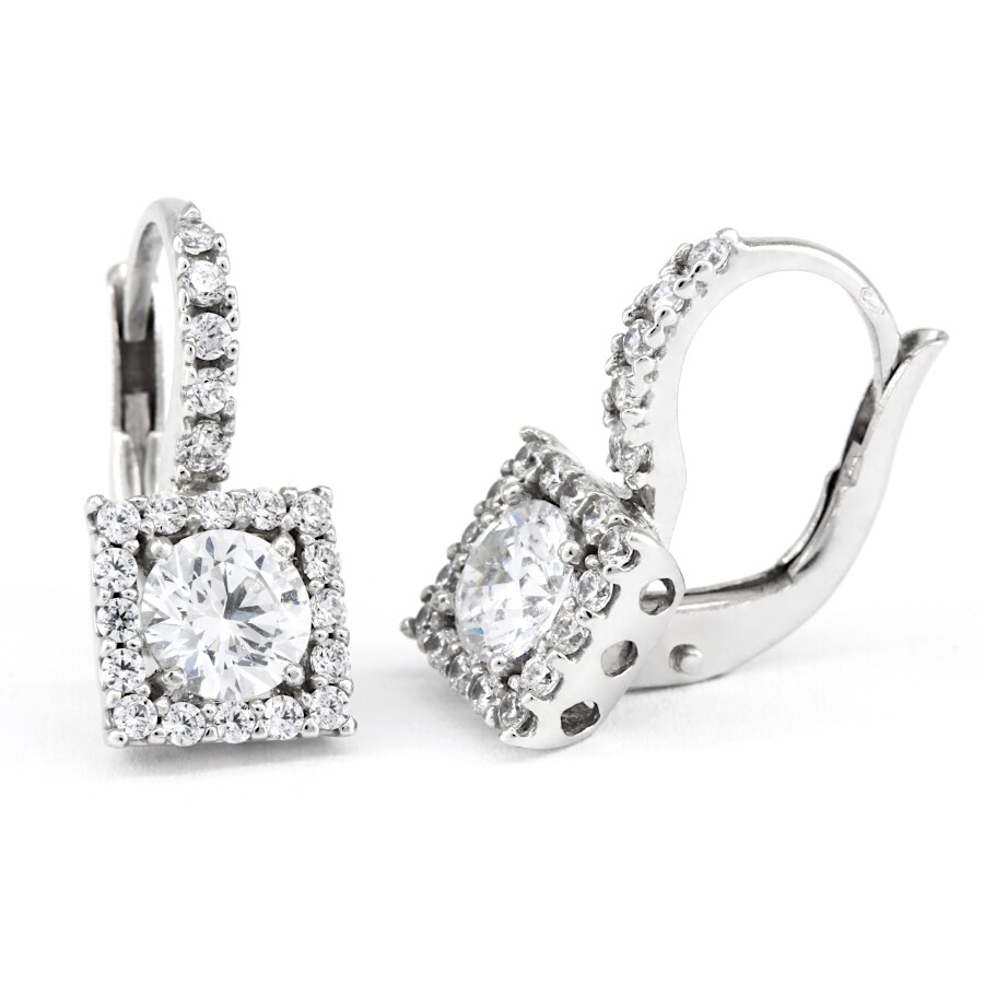 Náušnice bílé zlato Čtverec se zirkony