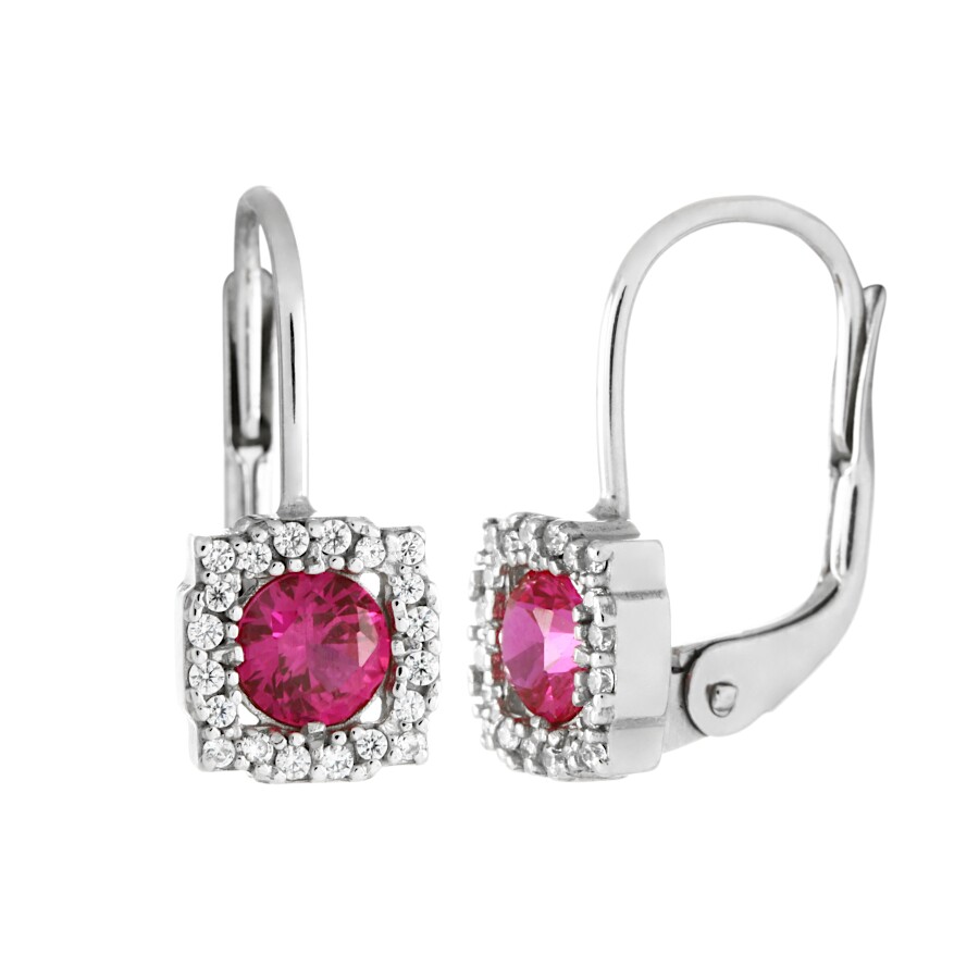 Náušnice bílé zlato Čtverec střed červený zirkon