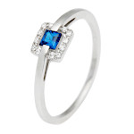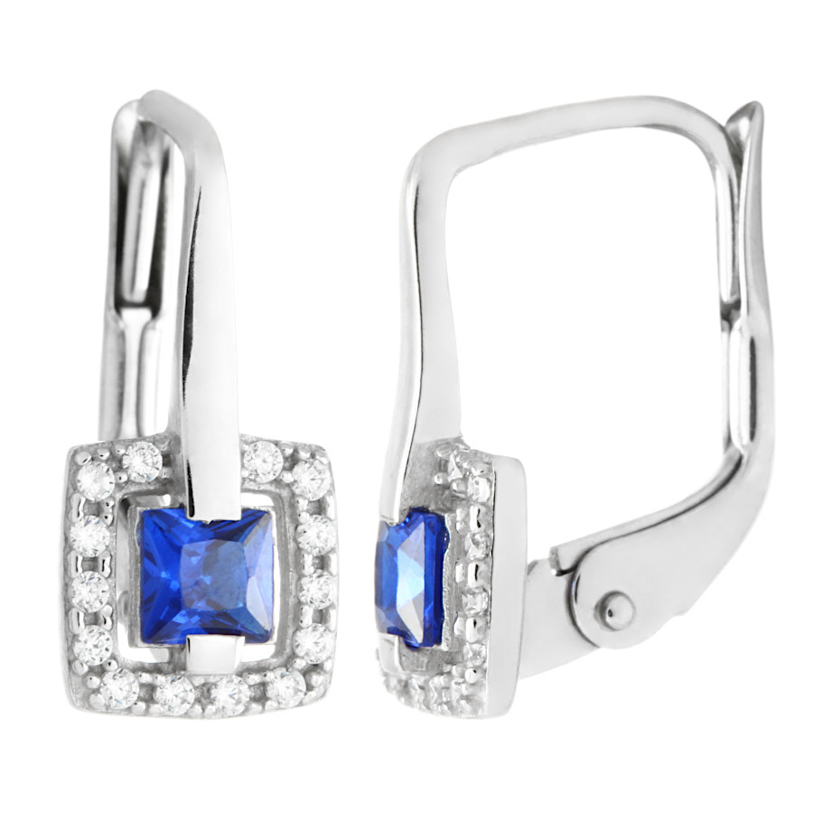 Náušnice bílé zlato Čtverec střed tmavě modrý zirkon