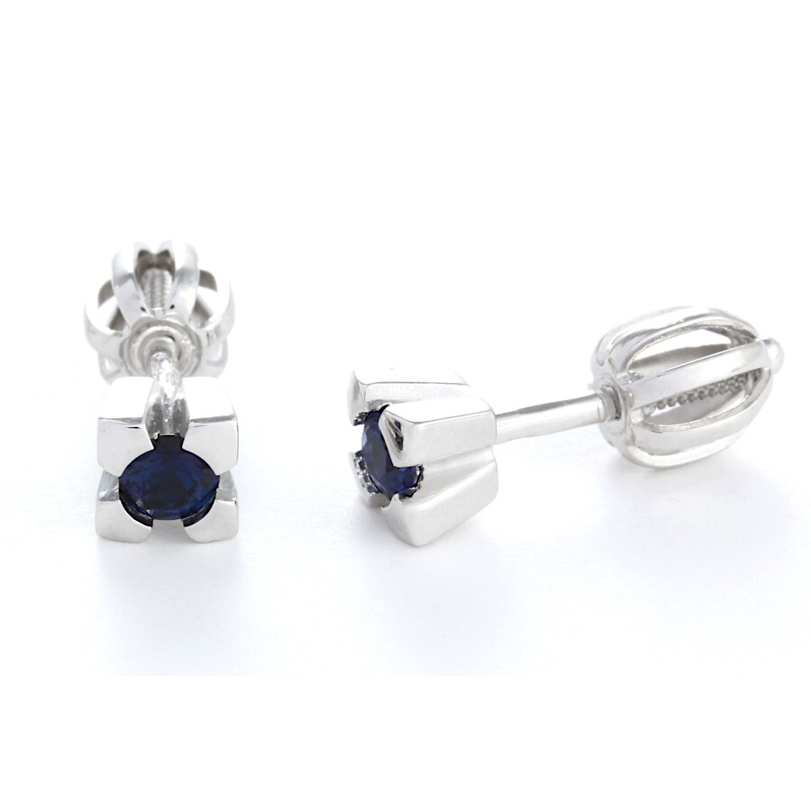 Náušnice bílé zlato Čtvereček s přírodním modrým safírem