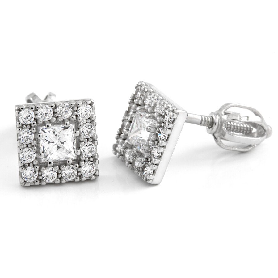 Náušnice bílé zlato Čtvereček střed zirkon bílý