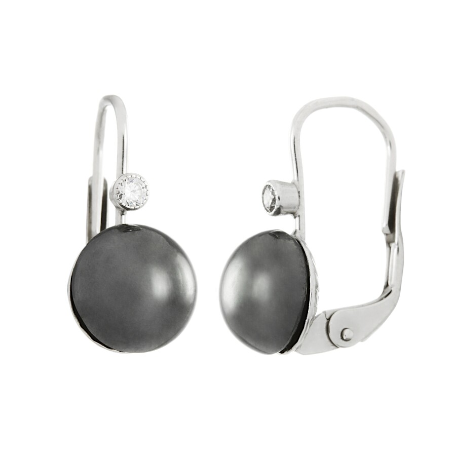 Náušnice bílé zlato Hematit se zirkonem