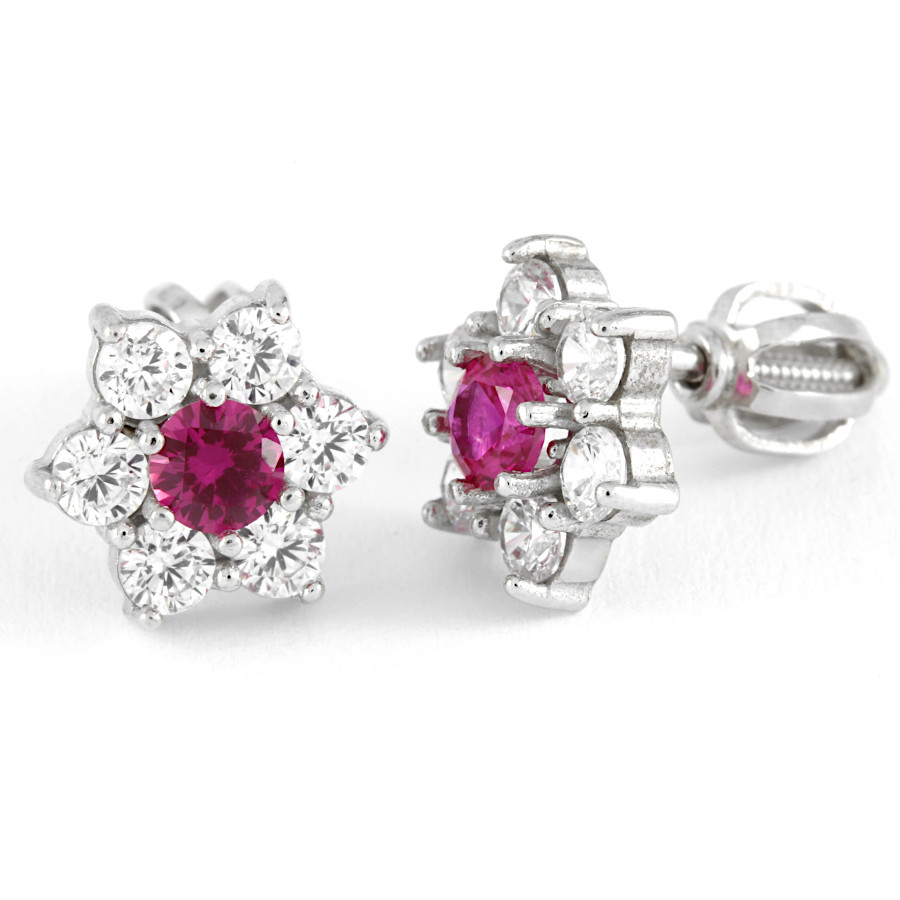 Náušnice bílé zlato Hvězdička střed červený zirkon